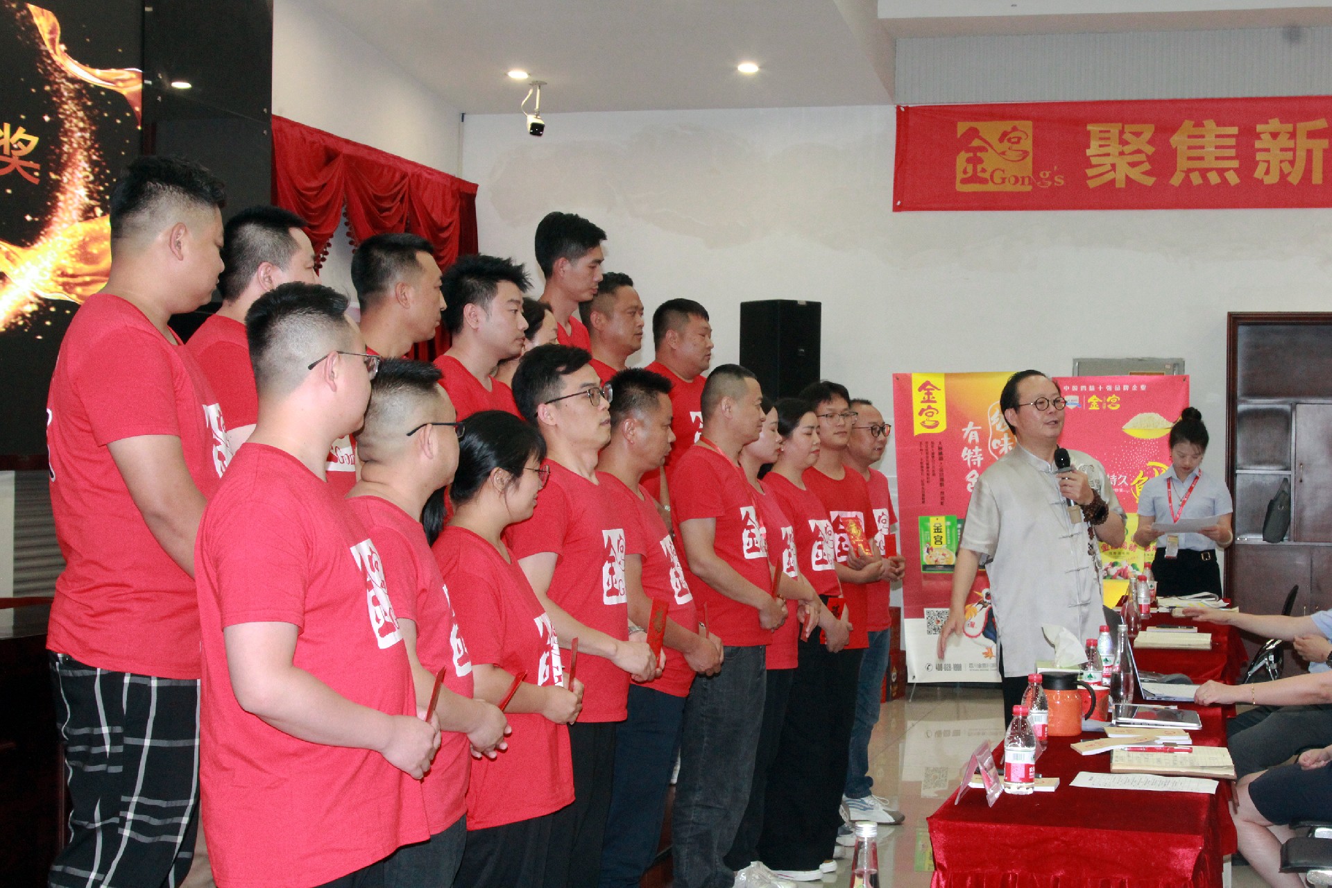 在掌聲雷動中,金宮川派味業對在上半年作出突出貢獻的個人與團隊進行了隆重表彰。從優秀銷售團隊獎到一線市場耕耘獎,從優秀管理人員獎到基礎市場建設貢獻獎,一張張獎狀、一段段榮譽,是無數次沖鋒與堅守的見證。榜樣的力量,正在感染和激勵更多的金宮人,向“能打勝仗、能打硬仗”的鐵軍目標不斷邁進!
