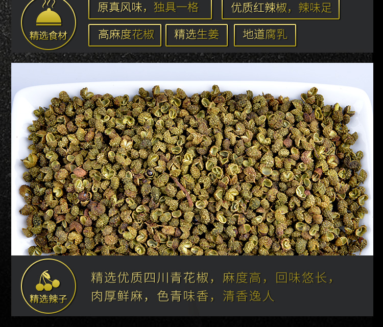 產品簡介:本品精選多種香料,特別添加麻辣包。青花椒的獨有青香,濃麻重辣。