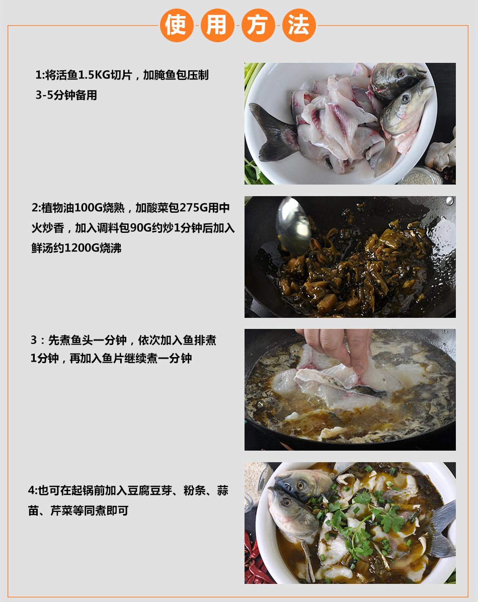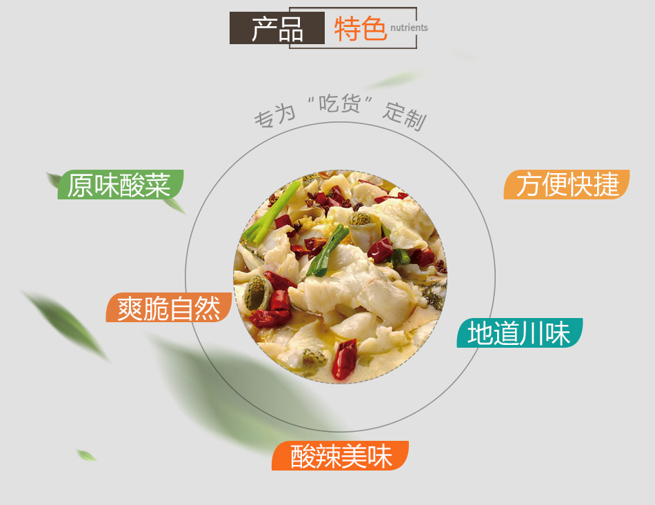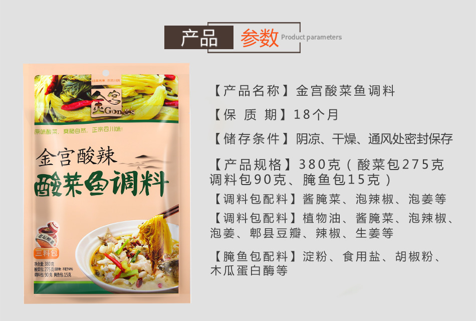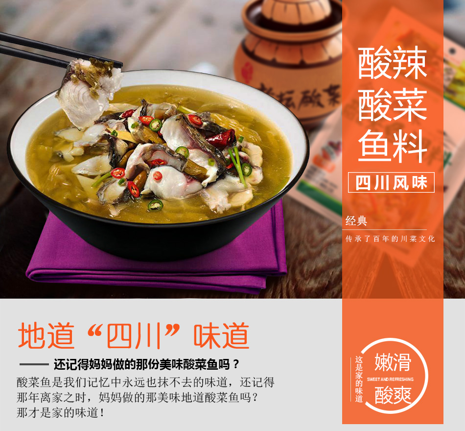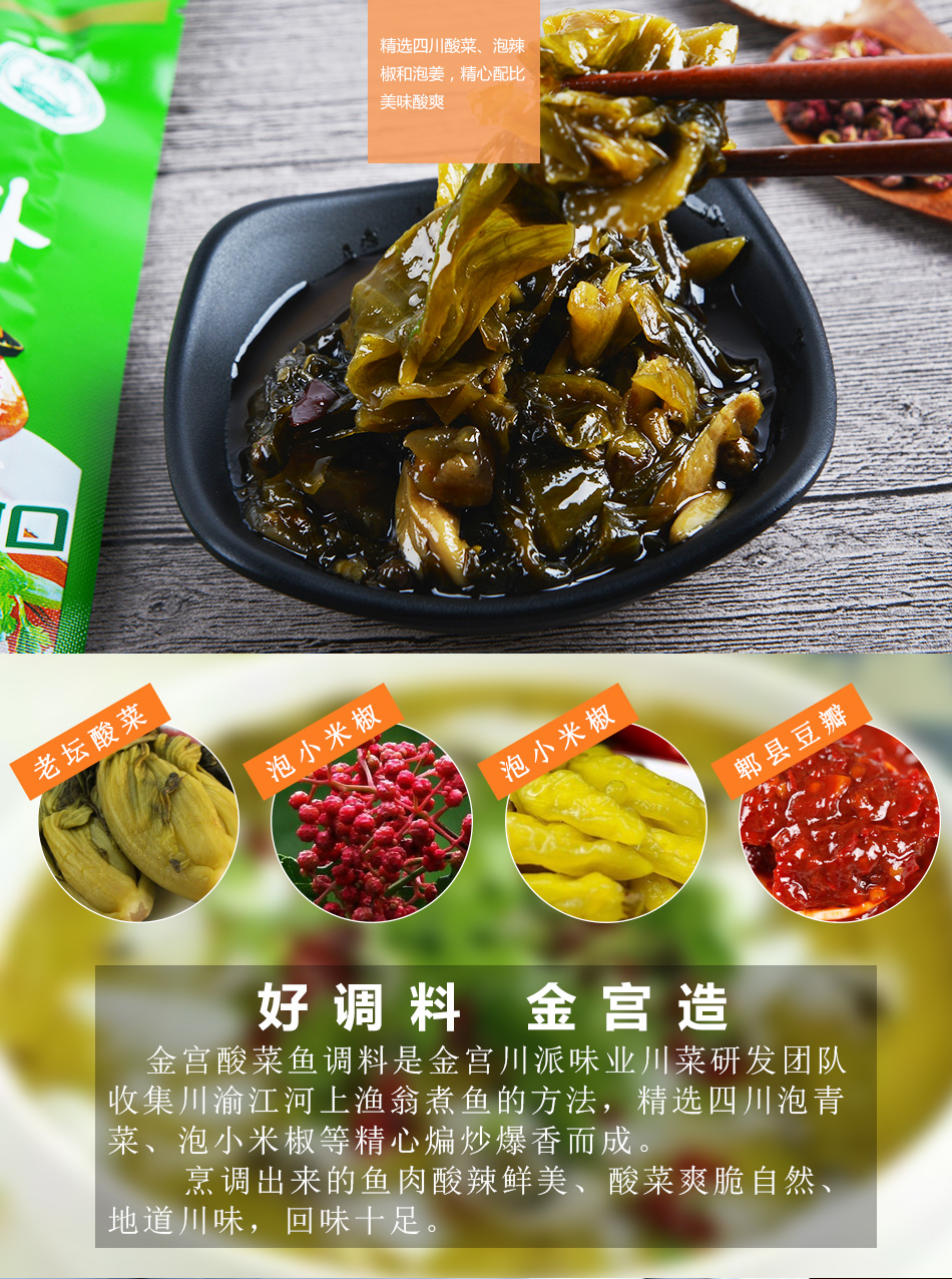 產品簡介:本品為金言川派味業川菜研發團隊收集川渝漁笛煮魚技巧。精心調配而成。晴選四川泡菜、優質花駔等食材。讓魚肉酸香可口,回味無窮。