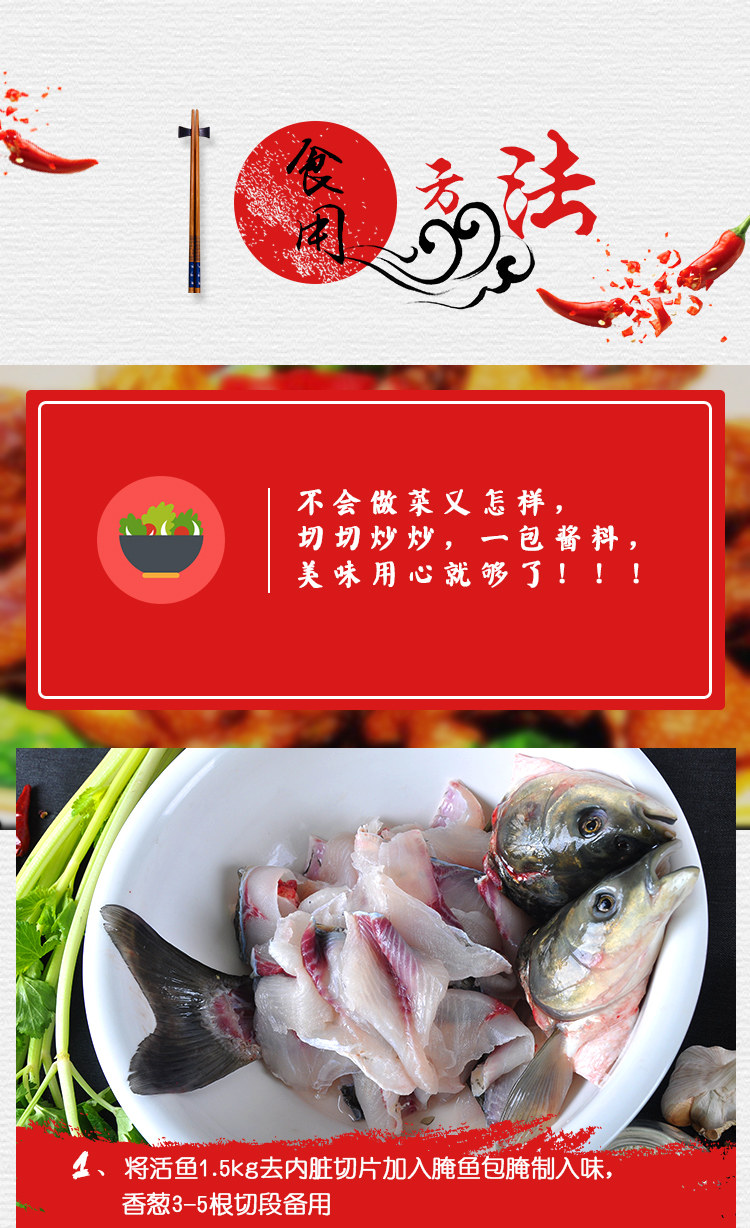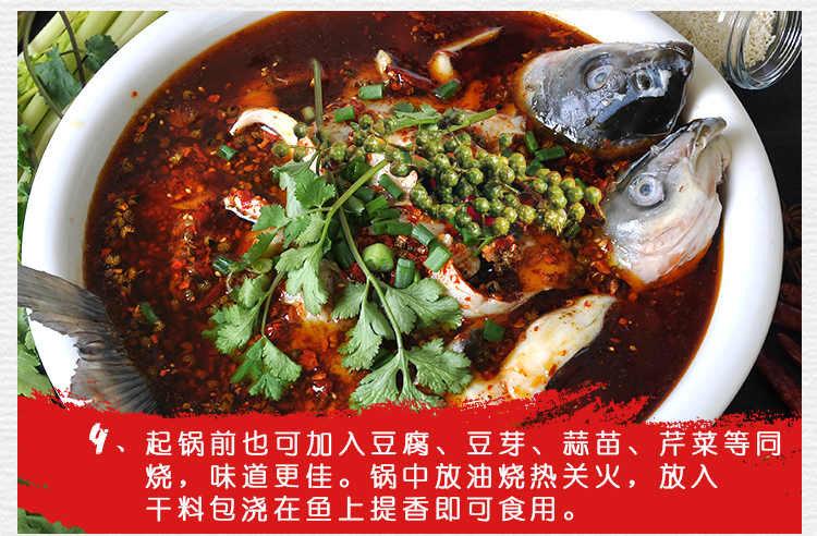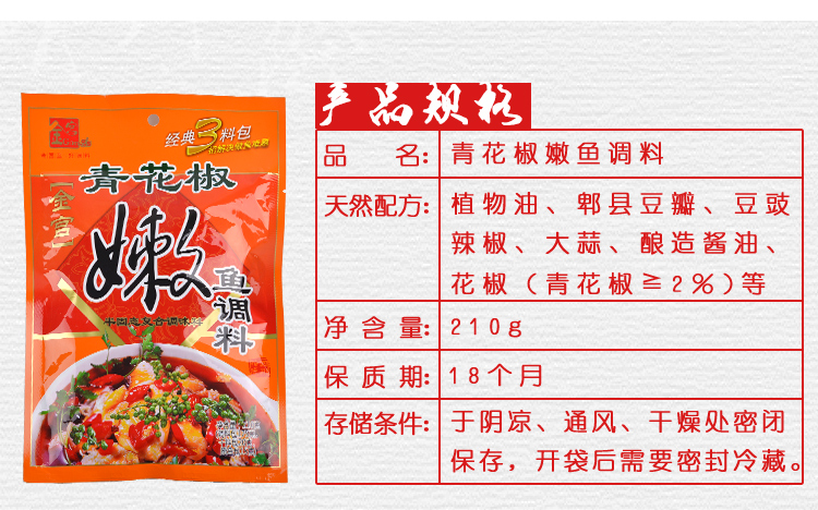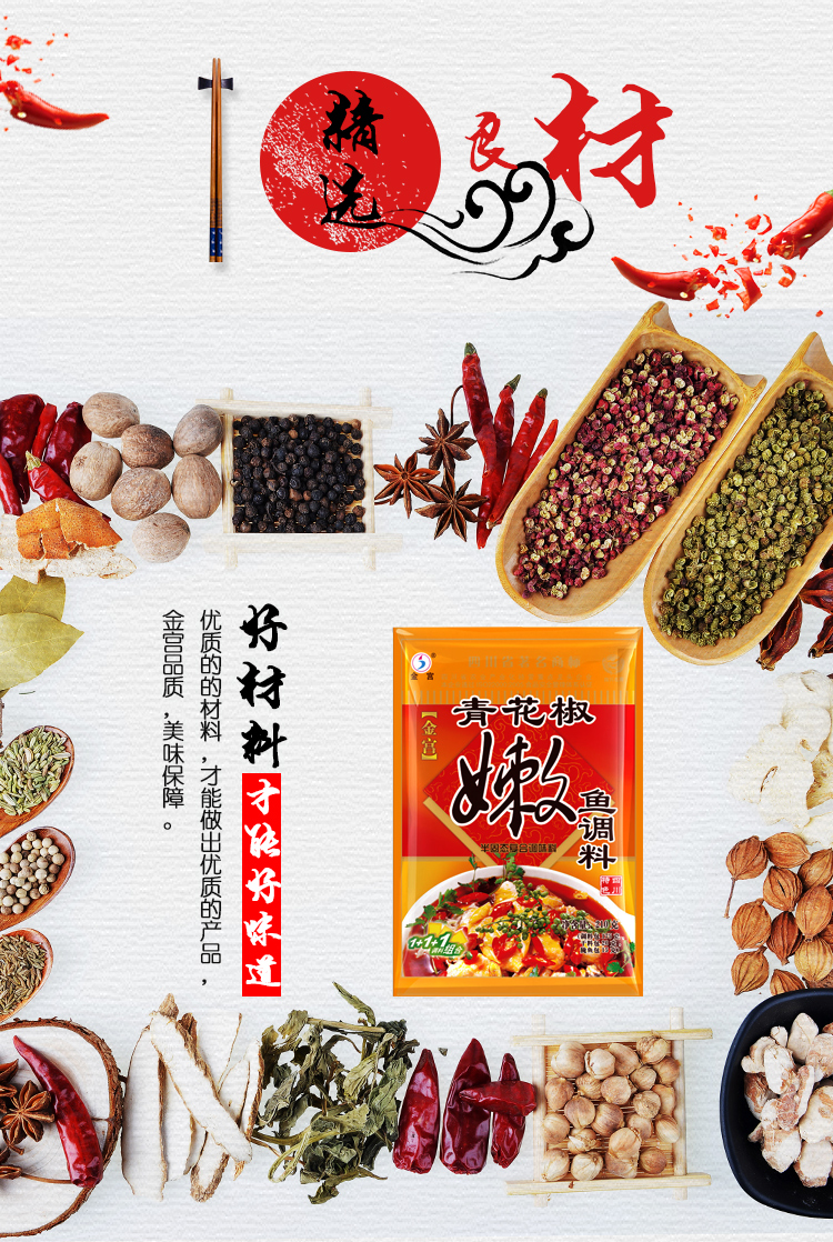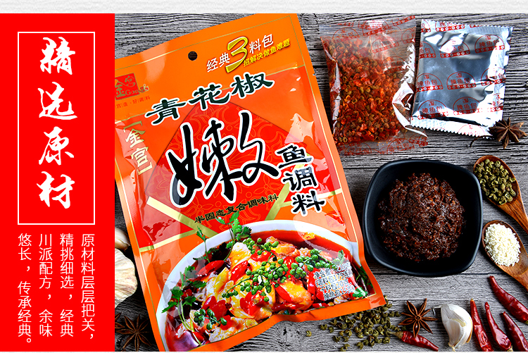 產(chǎn)品簡(jiǎn)介:本產(chǎn)品腌魚(yú)包能使魚(yú)更嫩滑且不失本身鮮美,特別添加金源青花椒,特麻辣且絲毫不掩魚(yú)本身的鮮嫩。真是吃魚(yú)就要嫩,一口百味生。
